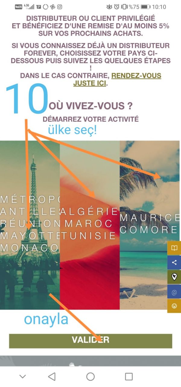 Fransa’da yeni kayıt yapmak için öncelikle foreverliving.com adresine girmemiz gerekiyor. Daha sonra sırasıyla yandaki resimleri izleyerek yeni kaydınızı gerçekleştirebilirsiniz.